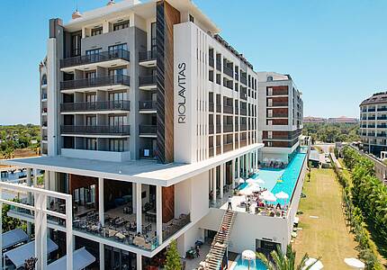 Das Ferienhotel liegt ca. 700 Meter entfernt vom Sandstrand Çolaklı, regelmäßiger Shuttleservice zum Strand